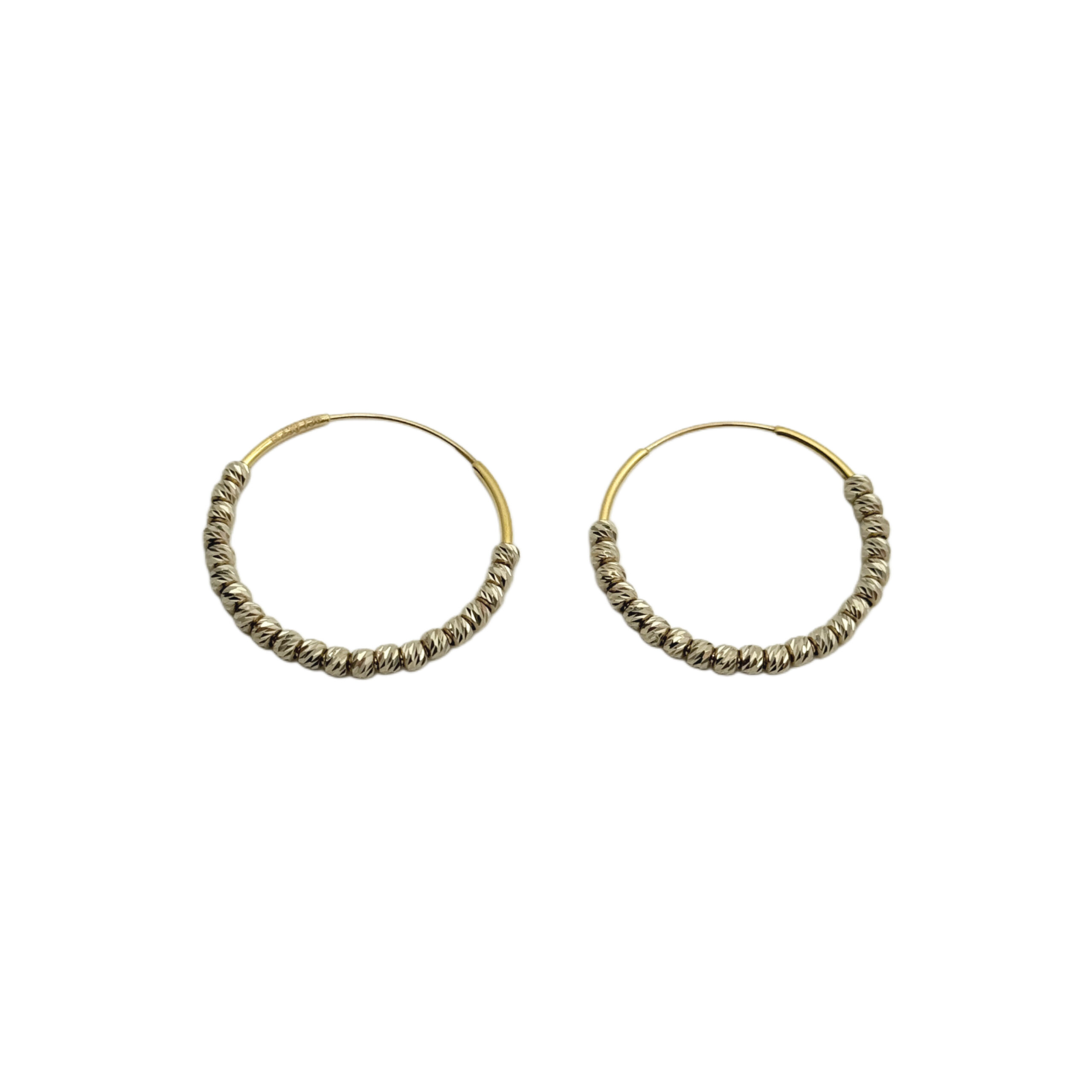 این گوشواره حلقهای طلایی با گوی سفید طراحی شده است. ترکیب رنگهای ملایم، ظاهری شیک و برازنده به آن داده است. مناسب برای خانمهایی با استایل ظریف و مینیمال است.